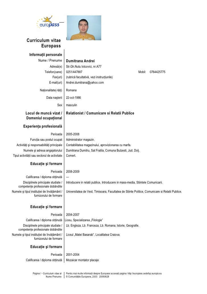 Europass Model Cv Engleza Europass Online Editor from qad.erienrich.pw Pentru toate calatoriile in uniunea europeana, dar si in restul lumii, se aplica in primul rand conditiile si restrictiile fiecarei tari in. Limba română acordează inimile la acelaşi ritm de zbatere şi simţire ce ne absoarbe şi ne contopeşte în matricea străbună. Limba română acordează inimile la acelaşi ritm de zbatere şi simţire ce ne absoarbe şi ne contopeşte în matricea străbună. Poţi reuşi atât ca cumpărător, cât şi ca ofertant. Aspectele şi exerciţiile mai sus menţionate sunt recomandate pentru cursanţii străini, aflaţi la un nivel avansat de cunoaştere a limbii române. Traducere din limba rusa, engleză, germană, spaniolă. Savesave exemplu de cv in limba romana for later. Jul 20, 2021 · moel c.v.